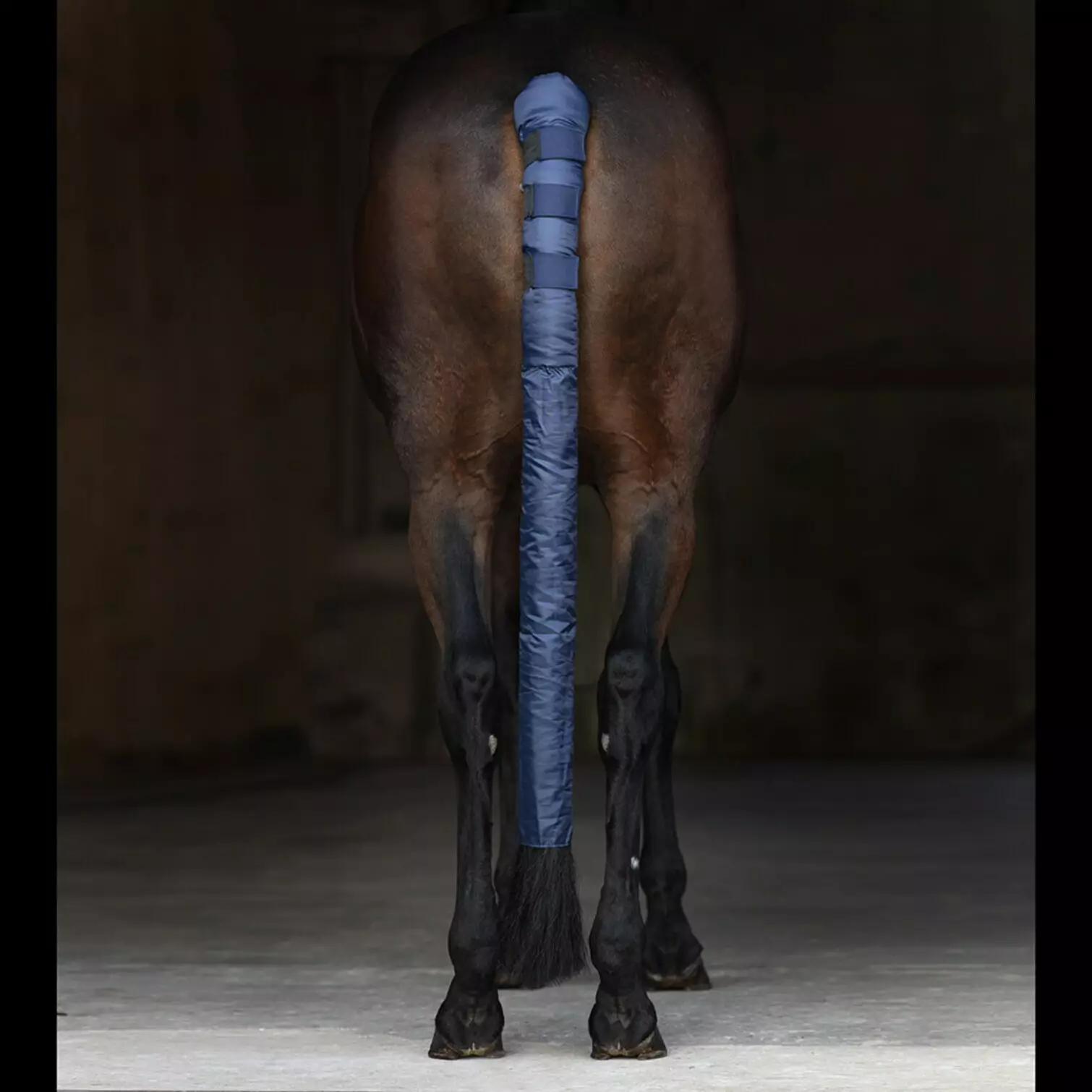 Pitkä, nyloninen häntäsuoja, joka pitää hevosen hännän puhtaana ja siistinä esimerkiksi kilpailujen ja kuljetuksen aikana. Suoja on 120 cm pitkä ja siinä on tukevat tarrakiinnitykset joustolla sekä pehmeä vuoraus yläosassa käyttömukavuuden lisäämiseksi.