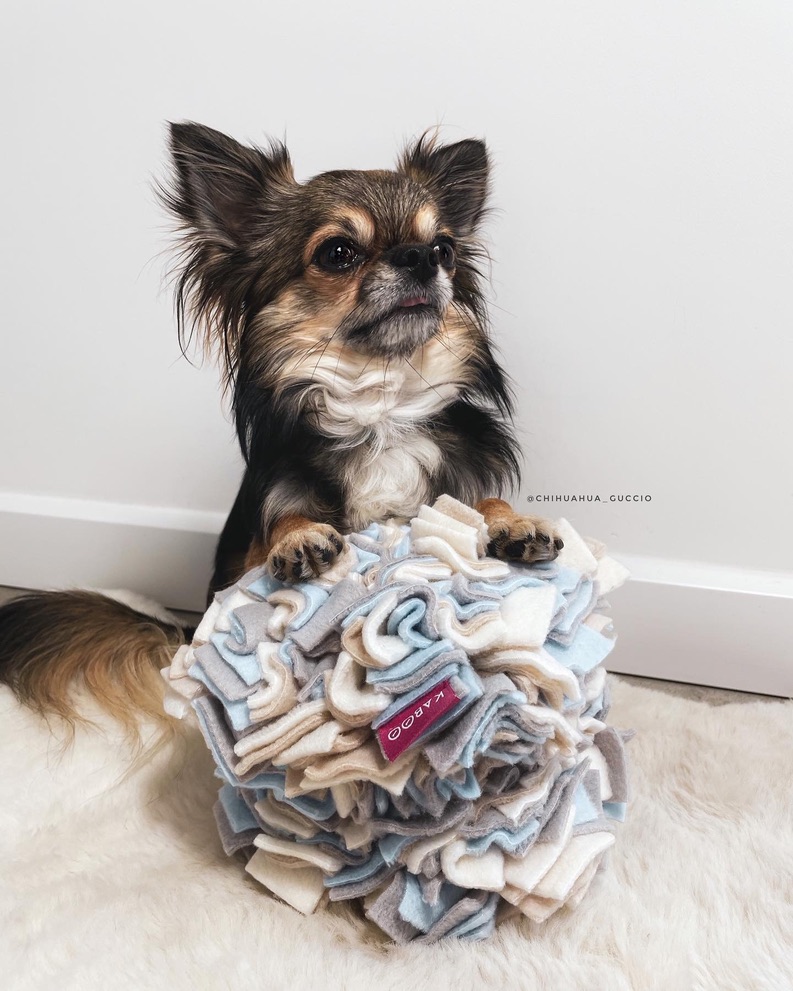 KABOO SNIFFERSit ovat nuuskimisleluja, joissa on valtava määrä paksuja ja pehmeitä fleeceliuskoja tai taskuja, joiden väliin voit piilottaa koirasi lempiherkut tai kuivaruokaa - sinne mahtuu vaikka koko ateria. Herkkujen etsiminen ja nuuskiminen vie koiralta pitkään ja antaa koiralle valtavan annoksen henkistä työtä.