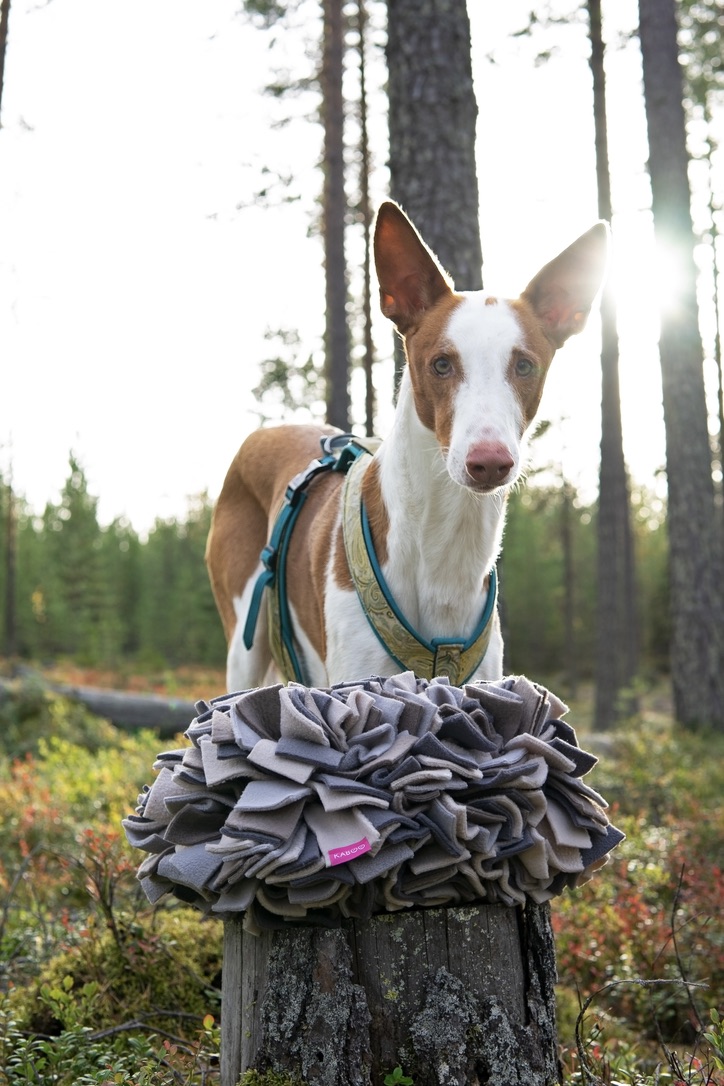 Kaksipuolinen, valmistettu useista paksuista, pehmeistä fleecekaistaleista, joiden väliin voit piilottaa koirasi lempiherkut. Tarjoaa koirallesi pitkiä ja rentouttavia nuuskuuteluhetkiä.