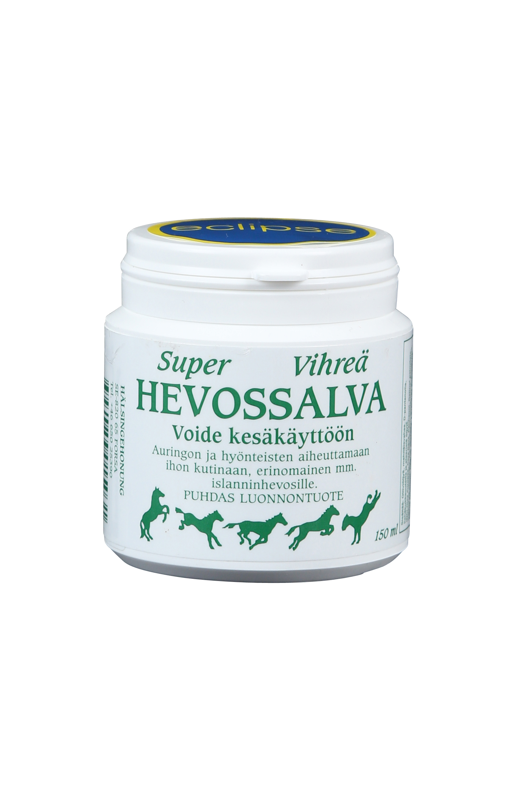 Vihreä Super Hevossalva on oliiviöljy ja mehiläisvahapohjainen luonnontuote hevoselle. Tarkoitettu hoitotuotteeksi kesäiholle tukemaan ihon hyvinvointia ja pienten nirhaumien ja haavojen paratumista, voi myös käyttää kesäihon kutinaan. Hyönteiset välttelevät eteeristen öljyjen tuoksua ja rasvattu alue pysyy puhtaampana.