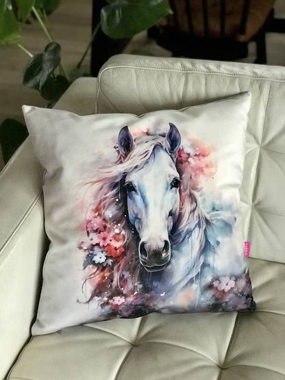 Tyyny valkoinen hevonen edestä 45x45cm KABOO